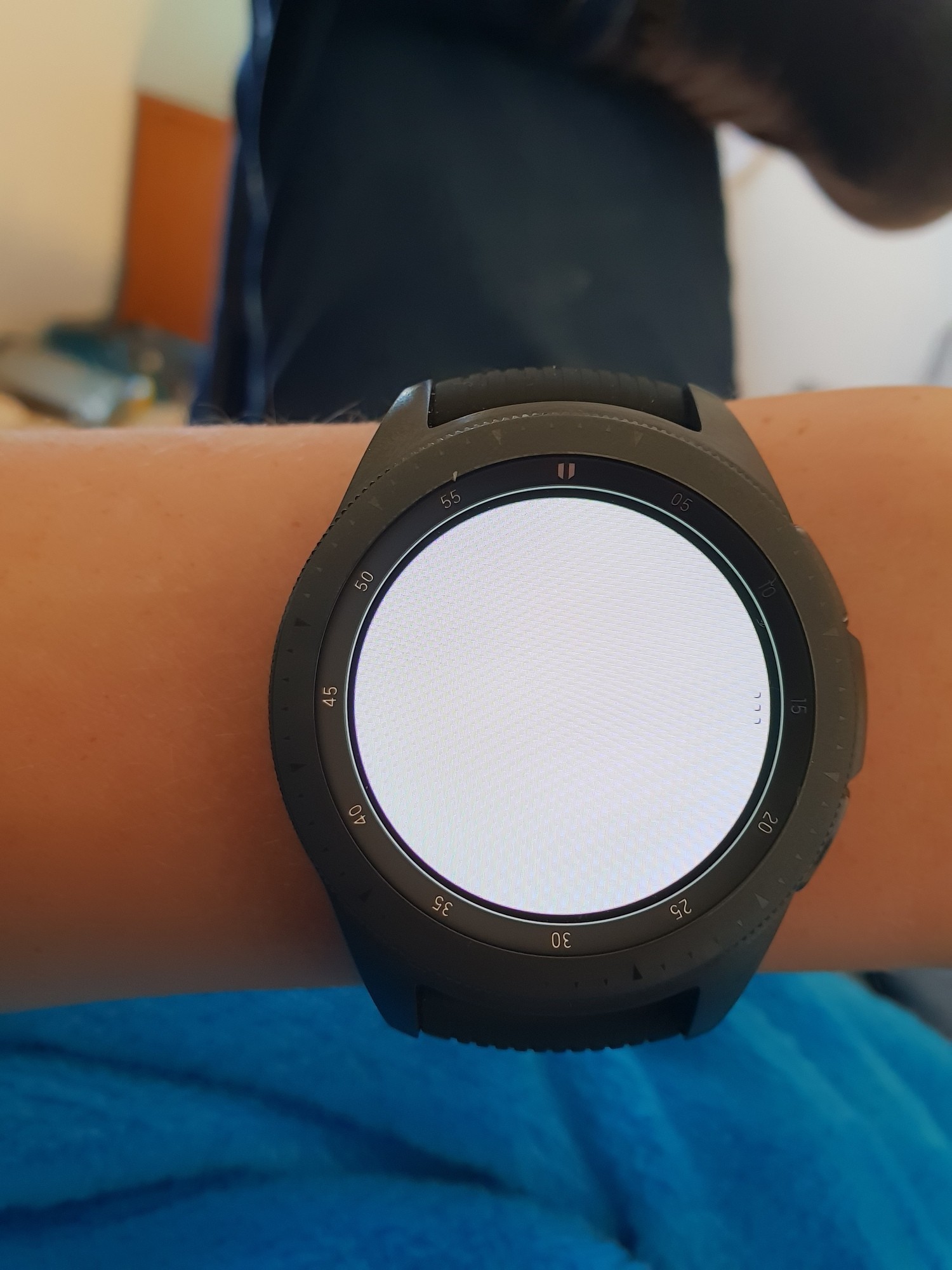 Hey. Meine Galaxy Watch zeigt weiss komisch an. Oben ist immer eine grüne Linie und unten eine Rote. Ist das normal?
