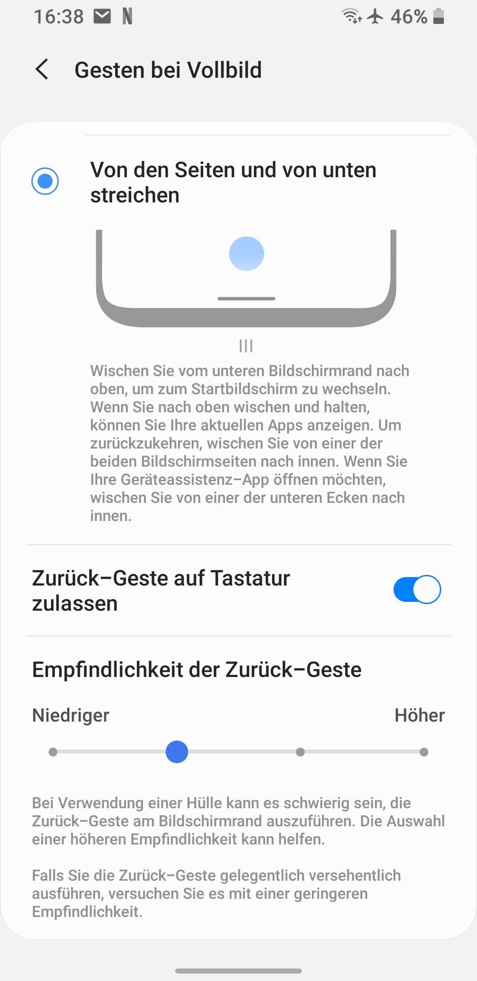 Ich habe die Gestensteuerung aktiviert (Version mit dem seitlich wischen)