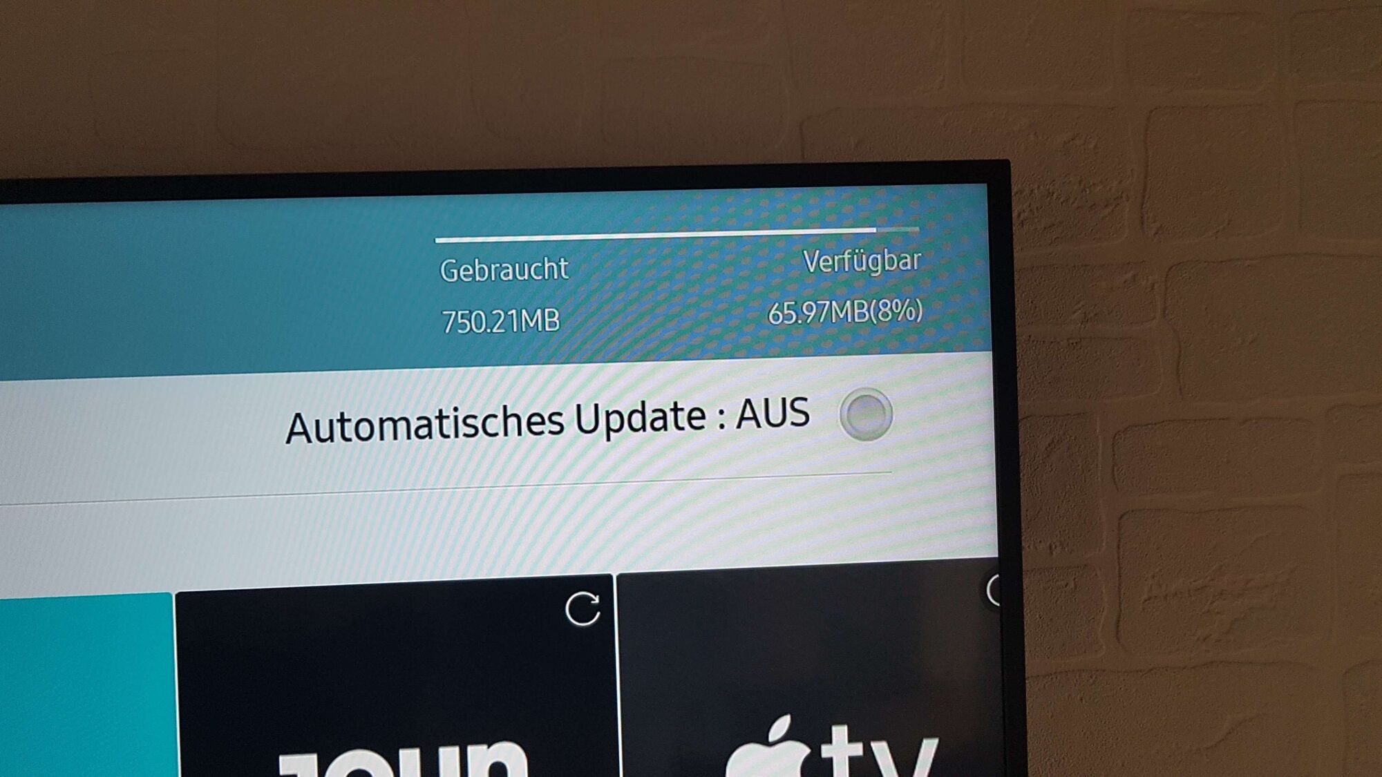 Ergo, es ist Platz vorhanden = kein zusätzlicher Kauf externer Geräte, sollte ich dies tun bekomme ich noch mehr Pflichtapps aufgespult die ich nicht haben will, da der fernseher signalisiert das man ihn noch weiter zumüllen darf.