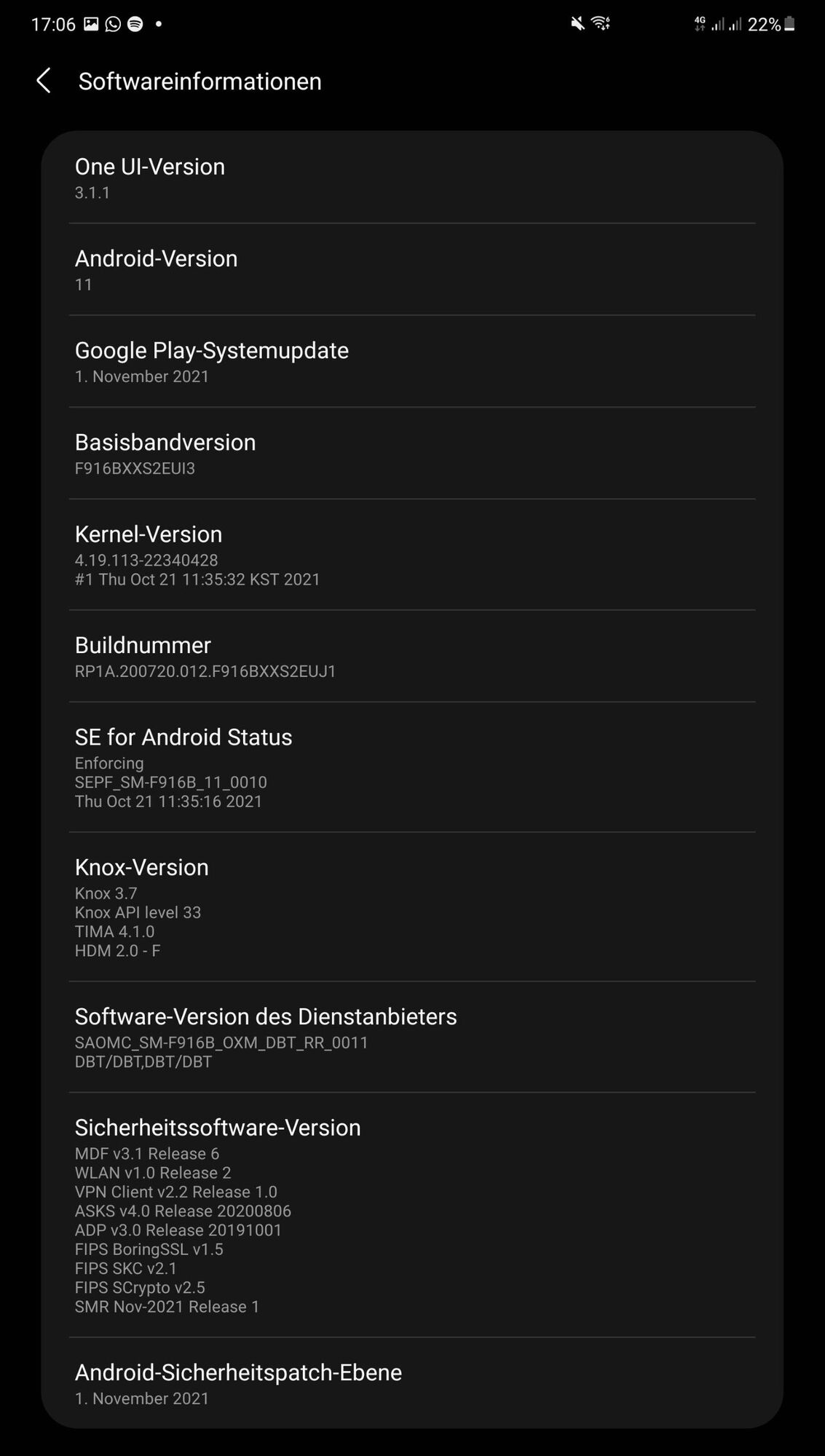 Hallo, hat jemand schon das One Ui4 Update bekommen? Soll ja seit letzter Woche verteilt werden, bekommen hab uch aber nich nichts... Im Anhang meine aktuelle Version. Neustart sowie mehrfache manuelle Suche erfolgslos.