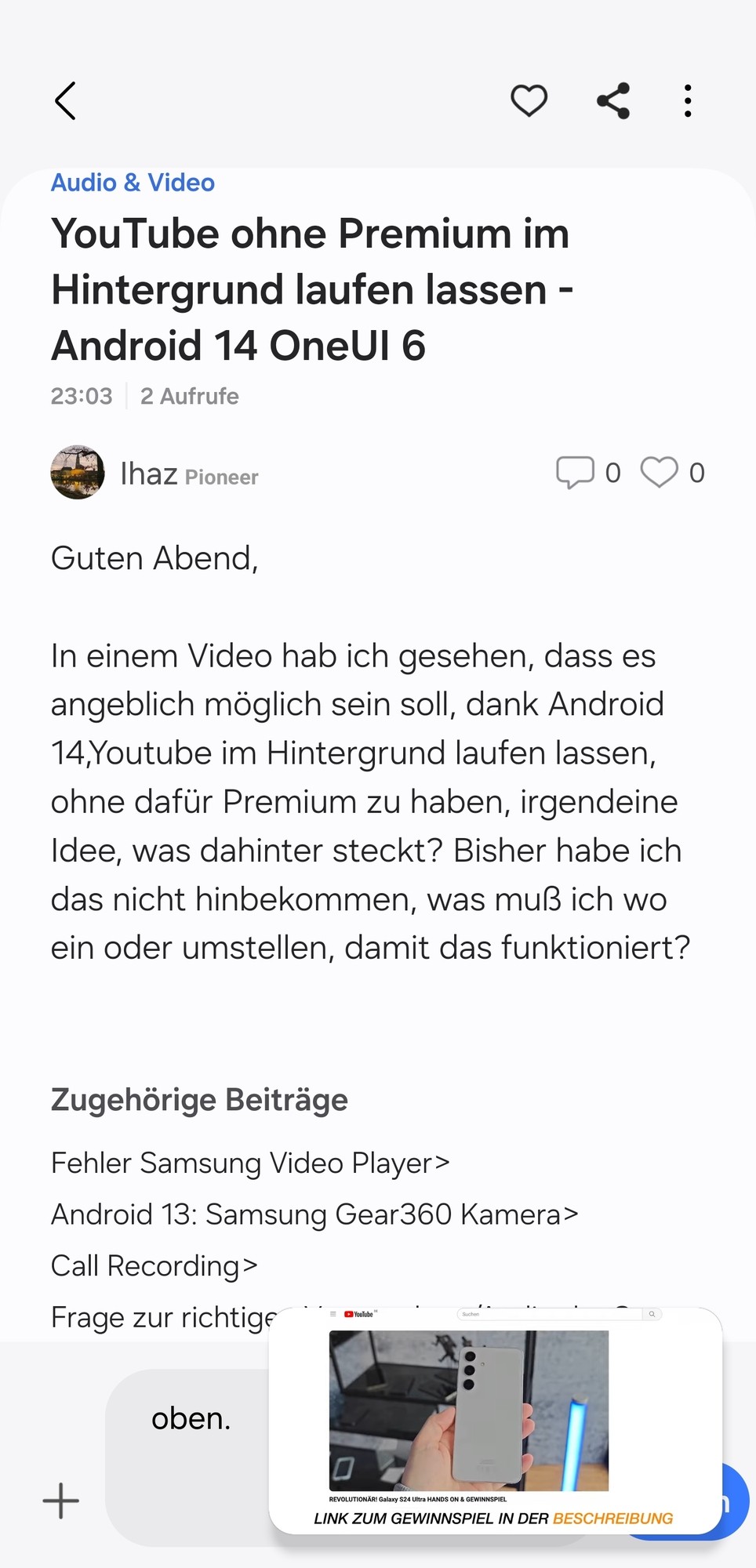 In einem Video hab ich gesehen, dass es angeblich möglich sein soll, dank Android 14, Youtube im Hintergrund laufen lassen, ohne dafür Premium zu haben, irgendeine Idee, was dahinter steckt? Bisher habe ich das nicht hinbekommen, was muß ich wo ein oder umstellen, damit das funktioniert?